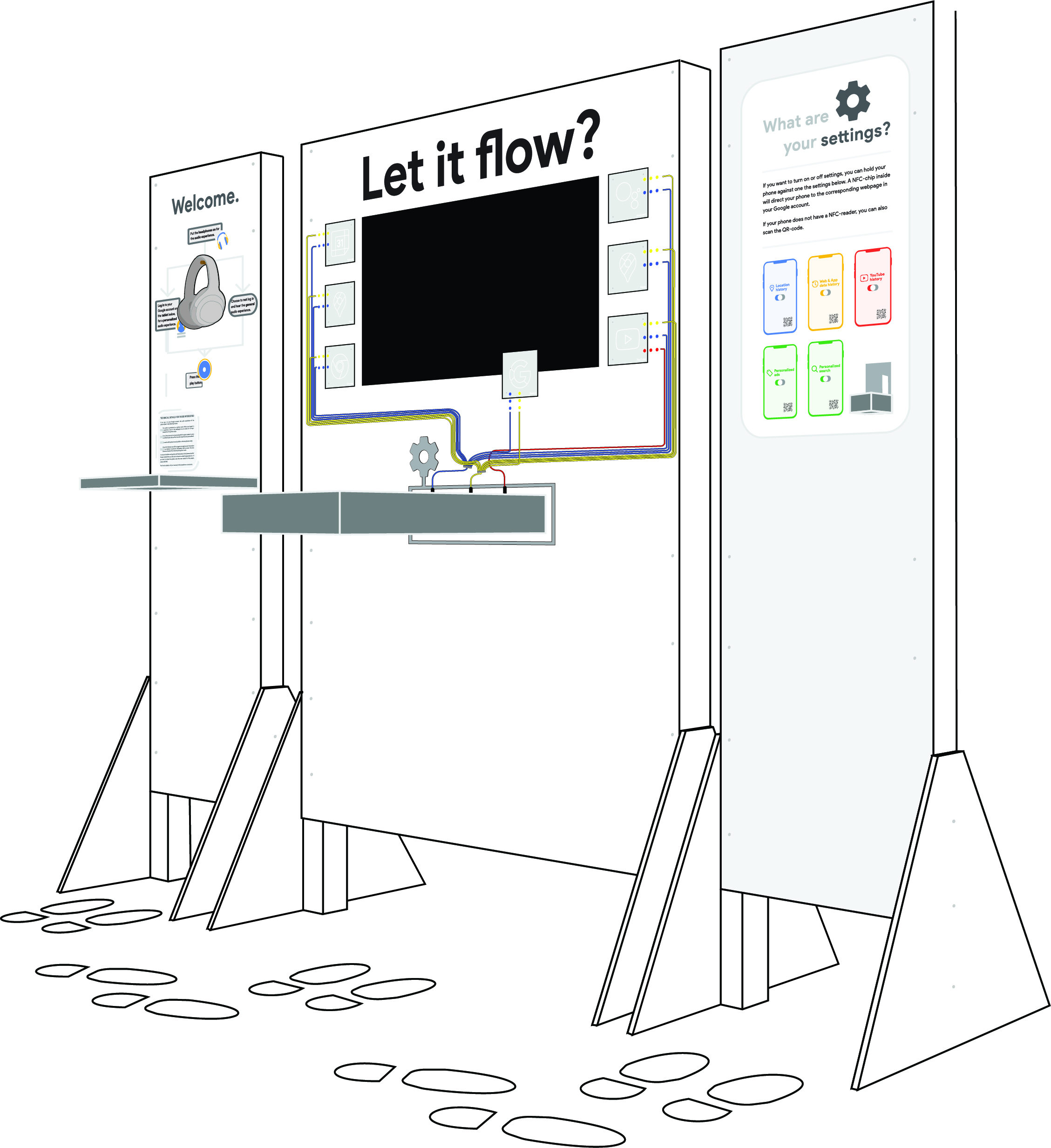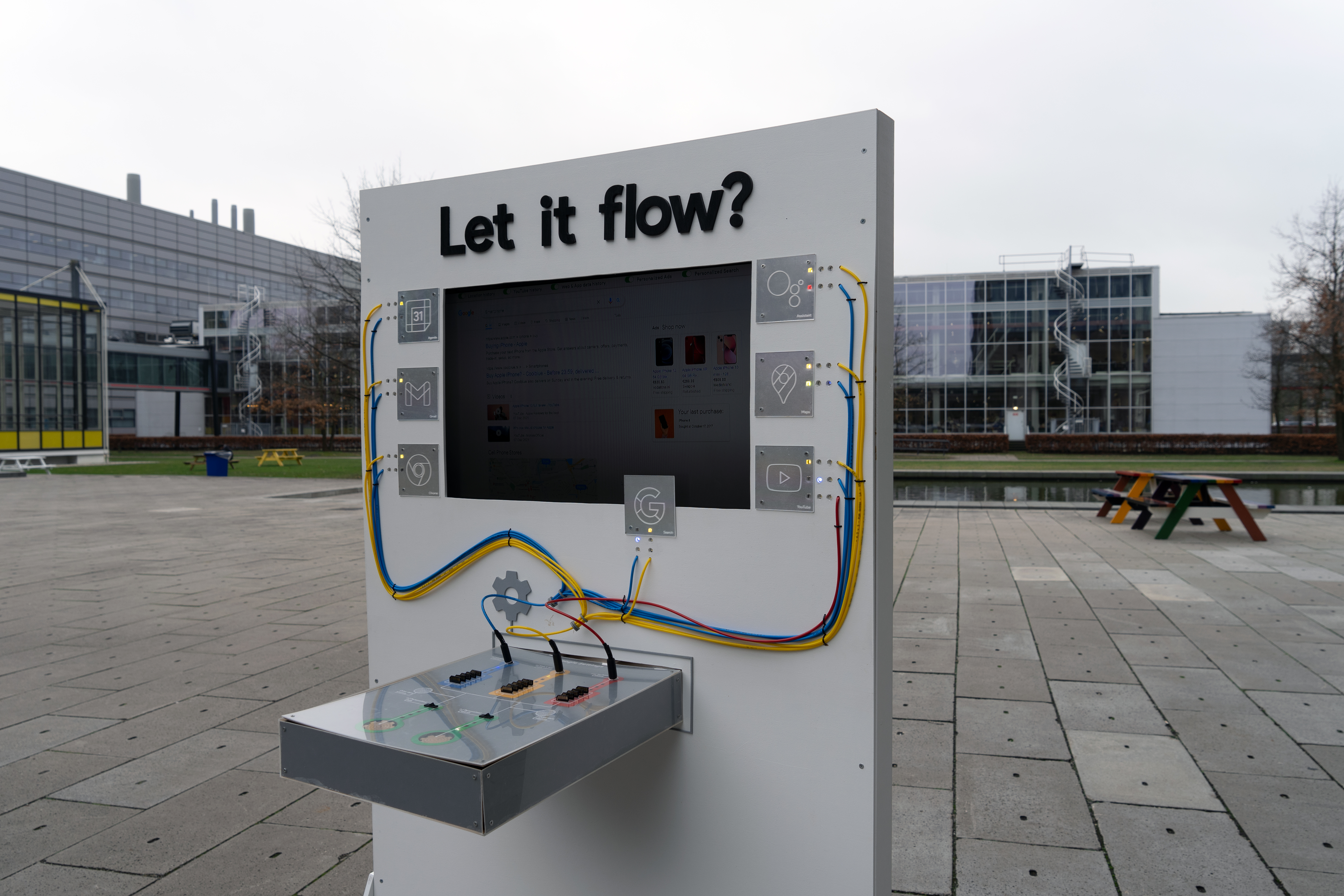 Let it Flow is een ervaarbare interactieve installatie die de datastromen van Google visualiseert en hun invloed op gepersonaliseerde zoekresultaten toont, waardoor bezoekers worden aangezet om na te denken over hun instellingen.